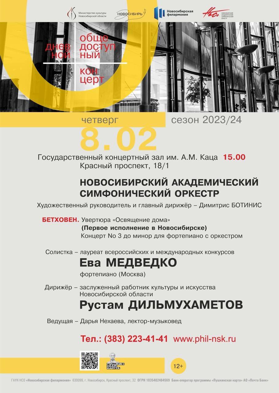 Государственный концертный зал им. А.М. КацаНовосибирский Академический Симфонический Оркестр Бетховен - концерт №3 для ф-но с оркестромСолистка - Ева МедведкоДирижер - Рустам Дильмухаметов